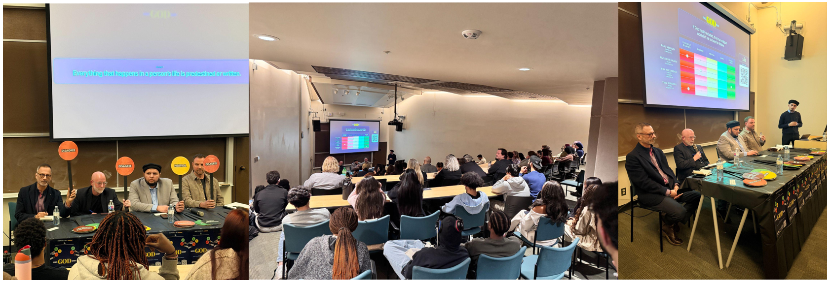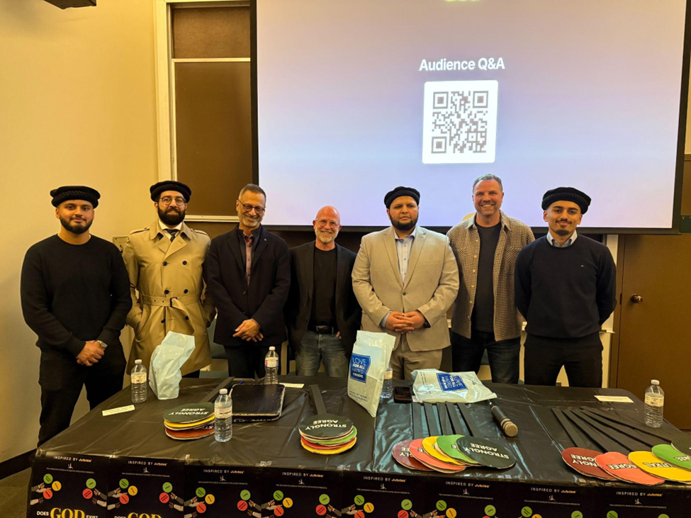 By the Grace of Allah, the Ahmadiyya Muslim Students Affiliation (AMSA) at Mount Royal University successfully hosted its interfaith event, “Does GOD Exist? Inspired by Jubilee,” on April 9, 2026, in Room Y-222 at Mount Royal University. Inspired by Jubilee’s spectrum-style discussion format, the program brought together panelists representing Islamic, Christian, Hindu, and Atheist/Agnostic perspectives to engage with key questions surrounding faith, morality, and the existence of God. The event was designed to foster respectful interfaith dialogue while reaching a broader non-Ahmadi audience through a thoughtful and accessible campus program. It also marked AMSA’s first major event at MRU in many years, making it an important milestone in the club’s renewed campus presence.