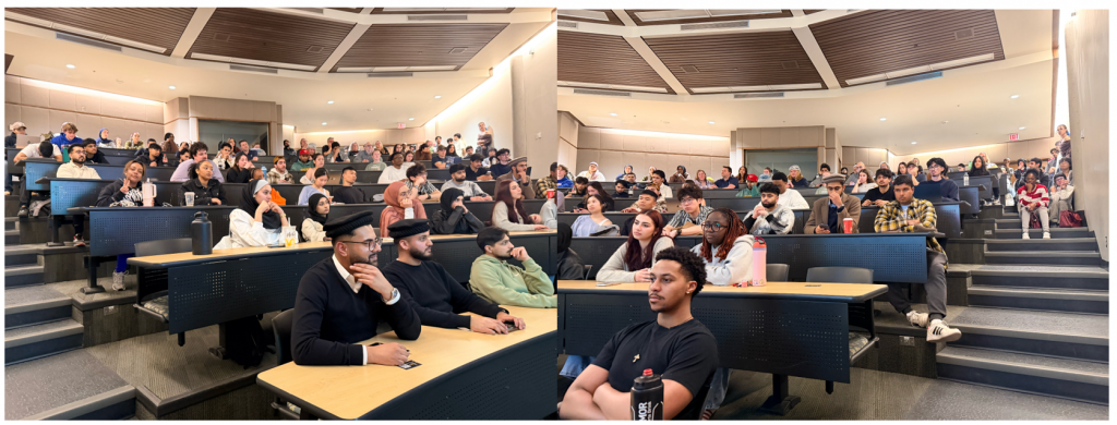 The effectiveness of these efforts was reflected in the final attendance figures. The event received 90 registrations, yet final attendance reached 123 guests, exceeding registration by 33 attendees and resulting in a remarkable attendee yield of approximately 137%. Most significantly, 95 attendees were non-Ahmadi, demonstrating that the event successfully attracted the wider audience it was intended to reach. The venue was filled, with additional overflow seating used at the back, and the event both began and concluded on time. These figures are especially notable given that this was AMSA MRU’s first major event in many years and therefore served not only as a standalone program, but also as a test of the club’s renewed presence and capacity on campus.