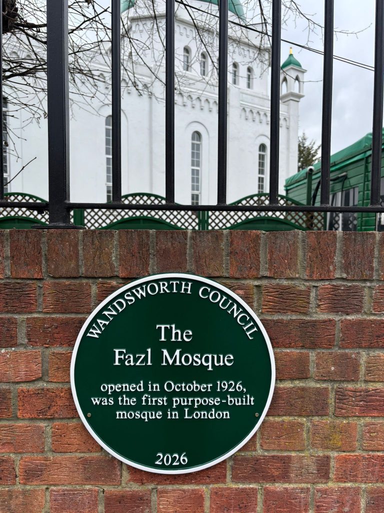Now, almost exactly a century after that grand opening, this historic mosque’s place in London’s heritage has been formally honoured. On 24 March 2026, a green heritage plaque was unveiled at the Fazl Mosque by Wandsworth Council, in a ceremony attended by the Mayor of Wandsworth, Councillor Jeremy Ambache, the Leader of the Council, Councillor Simon Hogg, and other distinguished guests and community members. The plaque, part of Wandsworth’s Green Plaque scheme funded by the National Heritage Lottery Fund during the borough’s year as the Mayor’s London Borough of Culture, recognizes the mosque’s historic significance as London’s first purpose-built mosque and its enduring contribution to British religious and civic life.