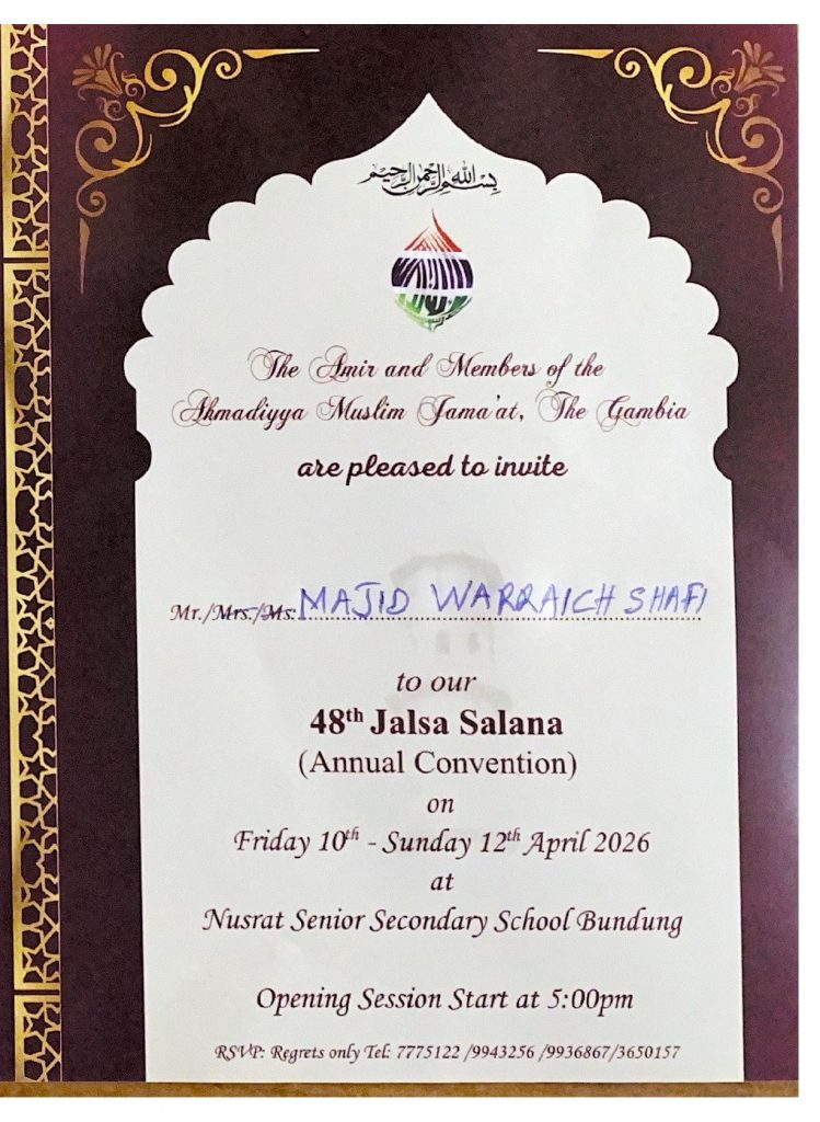 I humbly pray that the blessings of this Jalsa may continue to unfold throughout the year, enriching the lives of all participants, the entire Jamaat of The Gambia, the people of this blessed land, and indeed the whole world. Amen.