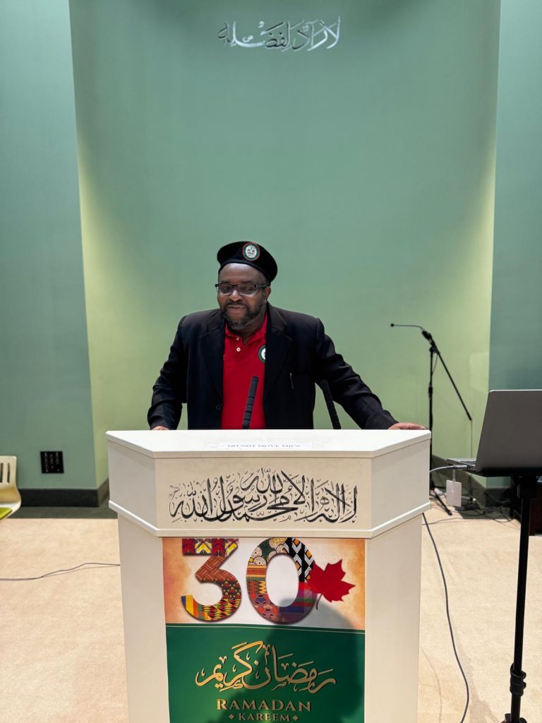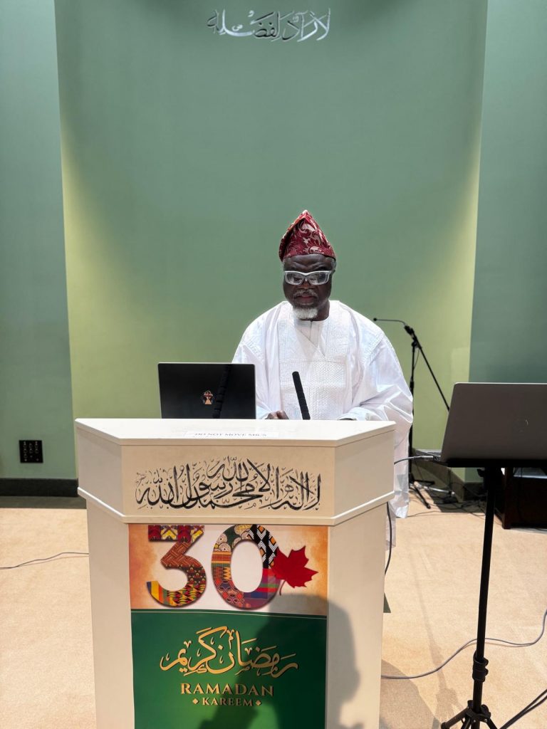 The programme paused for Iftar at 5:52 PM, as the celebration fell during the month of Ramadan. Following the meal, Dr. Alhaj Abdul Ghani Omokanye Sahib, President of PAAMA Canada, delivered the keynote address. Dr. Omokanye had travelled from Fort McMurray, Alberta, for the occasion.