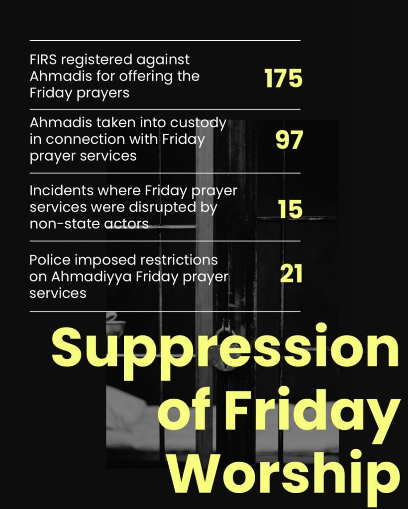 State authorities have repeatedly intervened to restrict Ahmadi religious practices, including the Friday and Eid prayers, while failing to provide protection against mob attacks or to ensure accountability for perpetrators. Judicial and administrative actions have further reinforced exclusion by criminalising routine expressions of faith and denying Ahmadis access to even basic legal safeguards.